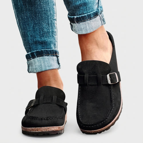 Women’s Buckle Slide Sandals Contoured Comfort Fit -